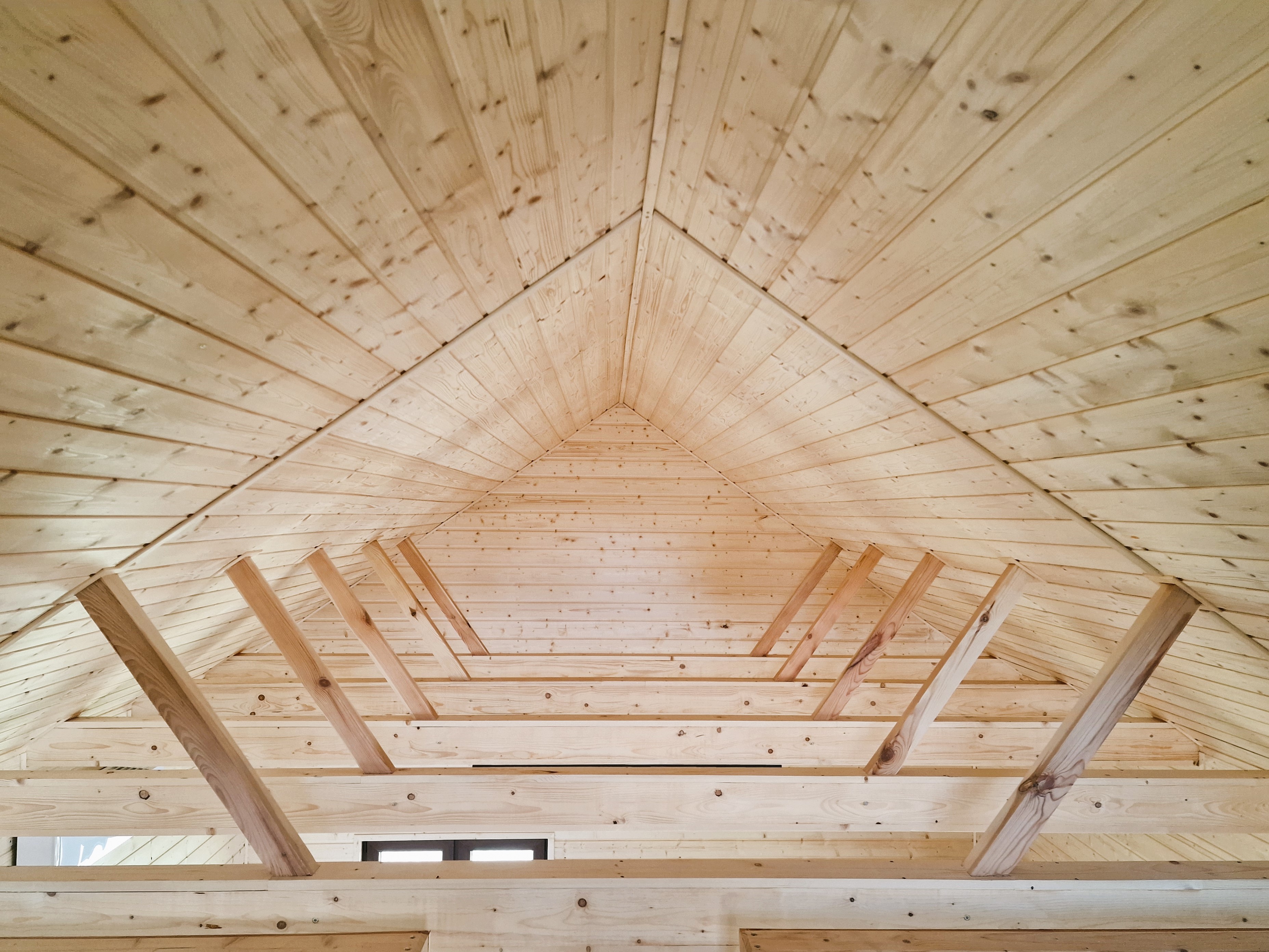 Wnętrze wykończono podbitką świerkową 19x146 prof. C FAZA.