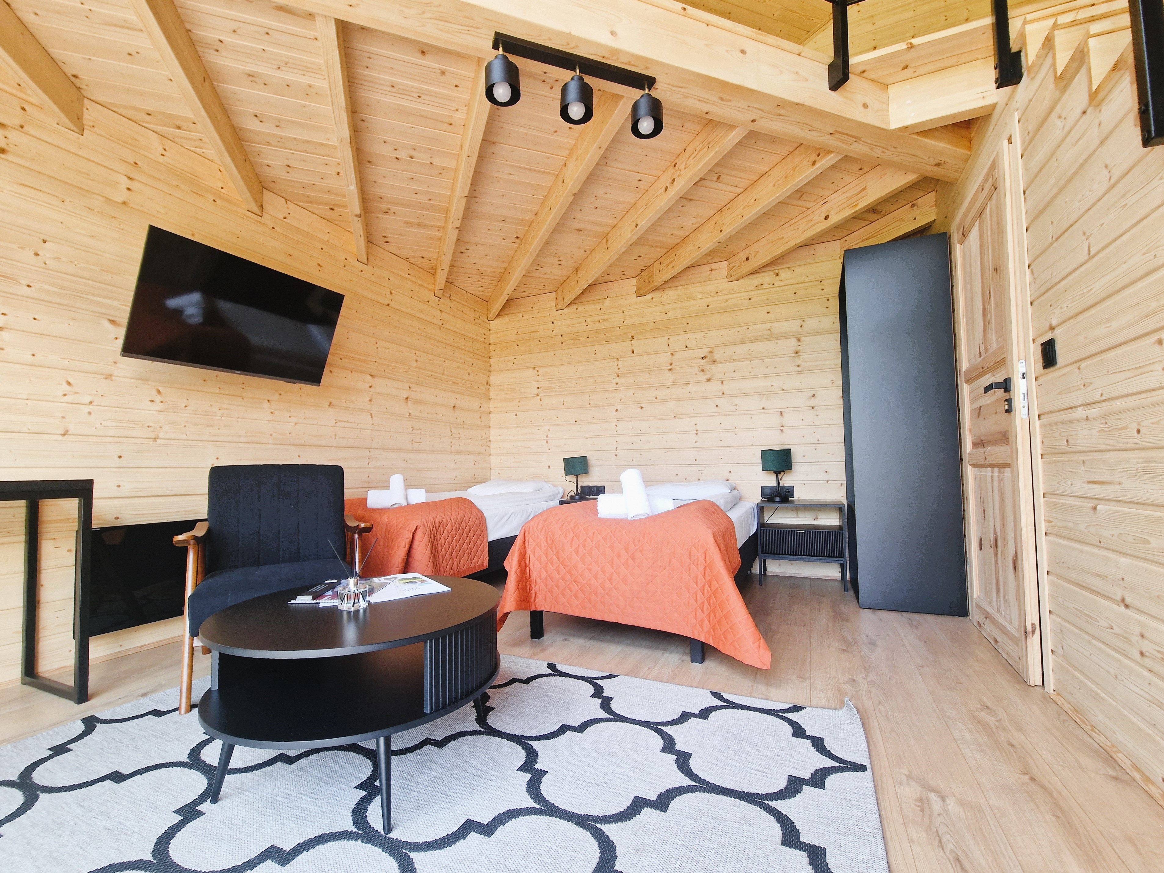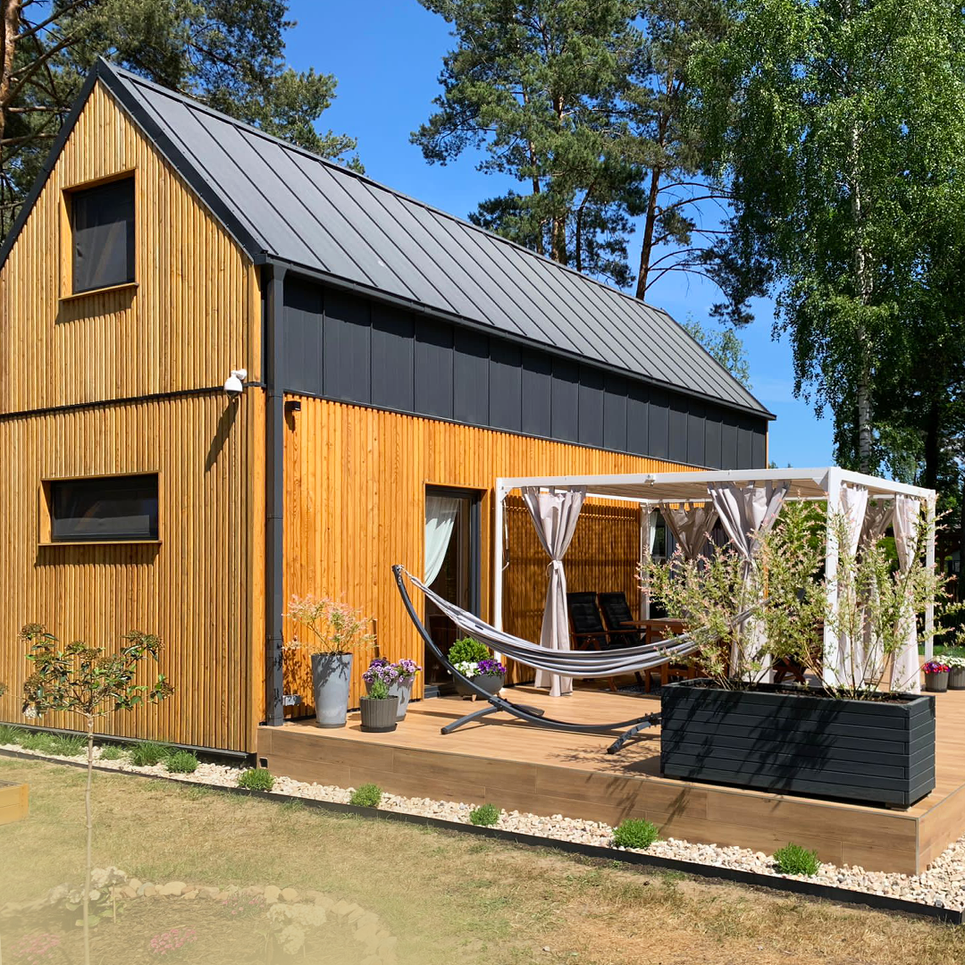 Domek drewniany z przeznaczeniem całorocznym. Konstrukcję domu wykonano z drewna konstrukcyjnego...