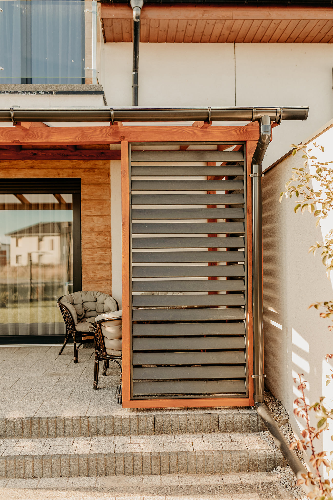 Na dachu został stworzony przepiękny taras z termososny wraz z ławkami i roślinnością.Ten...